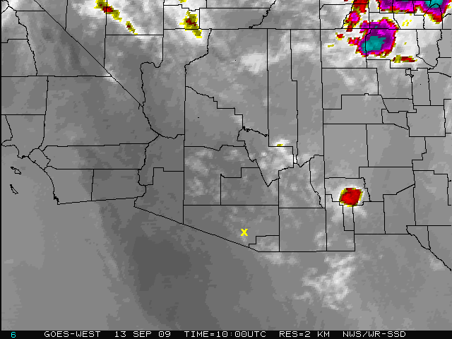 Thunderstorms and clouds prevented observations until the last 2 hours of the night. The weather map is from near the end of the night after the storms had dissipated in Arizona.