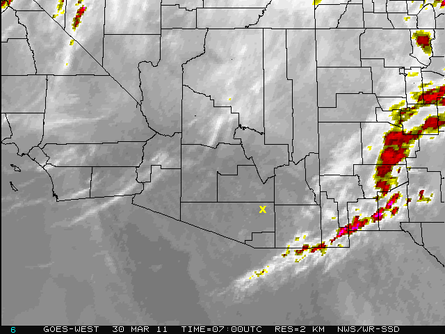 The first third of the night was lost to thick cirrus, seen east of the observatory in the weather image. By midnight, the sky was generally clear. The seeing varied between 1.2 and 2 arcsec.